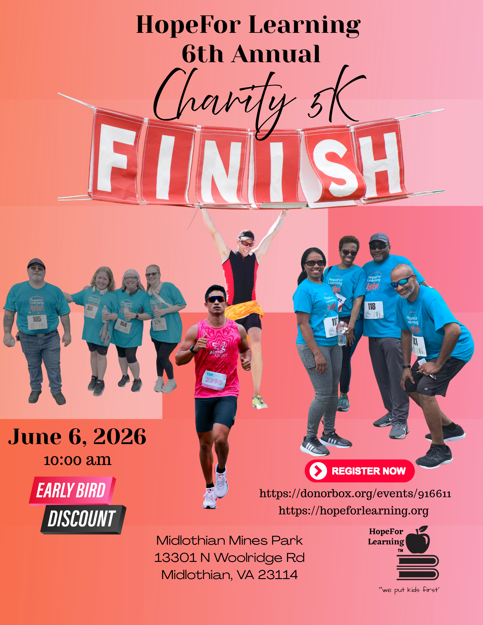 Registration is now open for our 6th Annual Charity 5K. Join us early and get your discount for our Early Bird Special with promo code